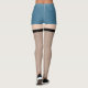 Blå denim kort med blek hudton ben med rötthögar av svart