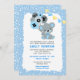 Blue Det är en pojk Bear Balloons Baby Shower-inbjudan har stjärnbakgrund. Cute björn håller ballonger med en pojke. Anpassa med din party-information om du vill ha en inbjudan av typen.