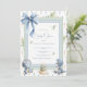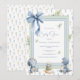 Sweet dinosaur baby shower invitation with contemporary background with adorable dinosaurs and rock accent. Blue bow flowing down over your event details. As sweet as can be for a perfect event. Gender neutral.