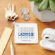 Med fet brev anges ord "LACROSSE" med "O" ersatt med ett basket. Den något bedrövliga utformningen ger en underbar personlig till en spelare, en tränare, ett team eller fläkt. Anpassa ditt namn på framsidan och lägg till en underbar åtgärdsbild av spelaren på baksidan. Finns i rött, orange, gult, lila, grönt, blått, svart, maron och pulverblått. Matchande produkter är tillgängliga.