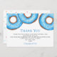 Tack familj och vänner för deras gåvor för din pojkes baby sprinkle med detta söta tackkort. Den har vattenfärgsblå munkar och snyggt. Baksidan dekoreras med färgstarka sprinkler. Enkelt anpassade. Ursprunglig vattenfärg © Michele Davies.