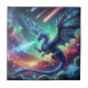 En mystisk blå drake flyger genom ett vibrerande kosmisk himmel, omgiven av stjärnstoft, snöflingor och skjutstjärnor.