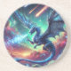 En mystisk blå drake flyger genom ett vibrerande kosmisk himmel, omgiven av stjärnstoft, snöflingor och skjutstjärnor.