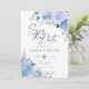 bröllop spara datum-kort för blommigtens vattenfärg. Elegantens blommigt sparar datumkortet med vackra, handmålade vattenfärgade blommor och grönska i dammigt blått med kalligrafi av eleganten och ljusblå bakgrund. Modern blommigt bröllop spara datum-kort. Du kan anpassa ordalydelsen, teckensnittet stil, färg och storlekt framför och bakom kortet. Kontakta mig gärna om du vill ha matchande artiklar.