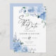 Blue Dusty Blommigt Light Blue Löv Spara datum Inbjudningar