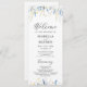 bröllopsprogram av elegant, dammig vild och gult, blommor i blommigt med vacker, handmålad vild blommor bouquets och gräns med modernt kalligrafiskt skript. Matchande objekt är tillgängliga.