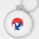 Blue Eagle Silhouette med Red Måne Keychain Rund Silverfärgad Nyckelring