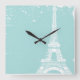 Blue Eiffel Torn Anpassningsbar Wall Clock Fyrkantig Klocka