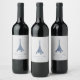 Blue Eiffel Torn Damask Wedding Vin etikett