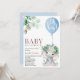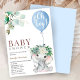Blue Elephant Balloon Baby Shower Boy Inbjudningar