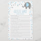 Det här är ett Blue Elephant-temat Gissa Vem babyvilt? *Gissa vem? - Det finns 15 frågor. Gästerna kommer att välja om frågan gäller Mor eller Far. Den som får mest svar höger vinner! Utformningen består av en blå och grått-elefant med polka dots. Babyduschspel, gissningsspel, duschaktiviteter, babydusch, mamma eller pappa, mamma eller pappa, babyduschspel för roligtar, zoomdjur