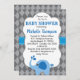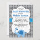 Blue Elephant Grått Background Baby Shower Inbjuda Inbjudningar