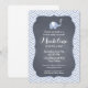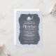 Babyduschdesign med söt blå elefant som spottar små hjärtan och blå chevron gräns. Bakgrund i kalktavla. Anpassadets text. PinkInkArt-original!