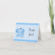 Tack för ett kort med söt blå elefant på stripe blå bakgrund och vågigt, blå topp och grund gräns med litet hjärta mönster. Vissa bilder ©Cherryclipart Desigtions