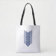 A beautifully crafted tote bag featuring an intricate blue ethnic embroidery-inspired pattern, blending tradition with modern minimalism for a timeless look.