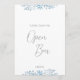 Det här moderna bröllop-tecknet för ditt öppna pub har dammiga blå eucalyptus löv och ett romantiskt skriptteckensnitt. Ta en titt på andra artiklar i samlingen "Blue Eucalyptus".