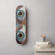 Bilden i Pastel Färg är ett blått Öga i en ramkonsform.
