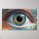 Bilden i Pastel Färg är ett blått Öga i en ramkonsform.