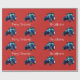 Blue Farm Trtors on Red jul Wrapping Papper Presentpapper