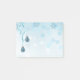 Julillustration i blått: Blåfärgade glitter-dekorationer med krökt rosett band på vit-blå bakgrunden.