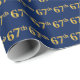 Den här pappra utformningen har ordnumret 67 med ett utseende som liknar faux/imitation guld. Den har också en blå bakgrund. Det skulle kunna användas när man slår in en gåva som ges för någons sextiosjunde födelsedag, eller kanske för ett gift pars sextiosjunde bröllop-årsdag, eller för något annat 67:e evenemang/tillfälle. [~Z0000070]