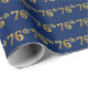 Den här pappra designen har ordnumret 76th med ett faux-guld-liknande utseende. Den har också en blå bakgrund. Det skulle kunna användas när man slår in en gåva som ges till någons sjuttiosjätte födelsedag, eller kanske till ett gift pars sjuttiosjätte bröllop-årsdag, eller till något annat 76:e evenemang/tillfälle. [~Z0000070]
