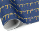 Den här pappra utformningen har ordnumret 77 med ett faux-guld-liknande utseende. Den har också en blå bakgrund. Det skulle kunna användas när man slår in en gåva som ges till någons sjuttiosjunde födelsedag, eller kanske för ett gift pars sjuttiosjunde bröllop-årsdag, eller för något annat 77:e evenemang/tillfälle. [~Z0000070]