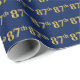 Den här pappra designen har ordnumret 87 med ett faux guld-liknande utseende. Den har också en blå bakgrund. Det skulle kunna användas när man slår in en gåva som ges för ett barns åttiosjunde födelsedag, eller kanske för ett gift pars åttiosjunde bröllop-årsdag, eller för något annat 87:e evenemang/tillfälle. [~Z0000070]