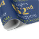 Den här pappra designen innehåller ett meddelande som "62:a BIRTHDAY-LYCKLIG", där "62:a" utseendet faux/imitation guld. Den har också anpassade namn och en blå färgad bakgrund. Det kan kanske användas när man slår in gåvor som ges för någons sextioårsdag. [~Z0000135]