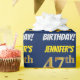 Den här pappra designen innehåller ett meddelande som "JENNIFER'S 47:e BIRTHDAY!", där "47:e" har ett utseende som liknar guld och liknar färg, och med namn och "BIRTHDAY" i ett roligt, fet stil. Namn är anpassade, och bakgrunden är färgad blå. Att packa pappert som detta kan kanske användas när man fyller på födelsedagskalkyl som ges till någon i firande på deras fyrtiosjunde födelsedag. [~Z0000209]