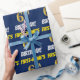 Den pappra utformningen av denna förpackning innehåller ett meddelande som "FIRST-NAMN's 6e BIRTHDAY!", där "6e" har ett utseende som liknar guld och liknar färg, och med namn och "BIRTHDAY" i en roligt med fet stil. Namn kan anpassas och bakgrunden är färgad blå. Att packa pappert som detta kan kanske användas när man fyller på födelsedagskalkyl som ges till någon i firande på deras sjätte födelsedag. [~Z0000209]