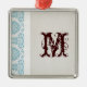 Blue Filigree Damask Monogram Initial Ornamal Julgransprydnad Metall