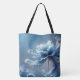 En fantastisk blomma blommar med invecklade, roterande blad i blå och vit nyans, skapande en eterisk och drömliknande effekt