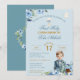 Den häpnadsväckande första Heligans inbjudningar till kommunal blommigt med rustik, vintage inspirerade inslag med pojken i kostym, mot en mjuk blå bakgrund. Baksidan av inbjudan har en boho stil kor med vattenfärgade utandningsblommor och grön mot havsblå bakgrund. Redigera bara textmallen så att den innehåller din egen information. Färger i bakgrunden kan också redigeras till ett valfritt färg. Byt ut "Första Heligans gemenskap" mot "Christening" eller "Baptism", beroende på vilket kostym som är ert speciella evenemang.