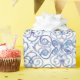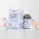 Blå vattenfärgsomslutning papper med en roligt rulla mönster. Använda för gåvor till tillfällen.