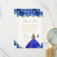 This elegant and glamorous birthday thank you card features a beautiful princess with blonde hair and fair skin in a royal blue ball gown. The text combines handwritten script and modern sans serif fonts for a classy and sophisticated look. The floral arrangements, butterflies and gold confetti create the perfect blend of rustic and chic.