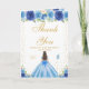 Blue Floral Brunette Hair Girl Birthday Tack Kort