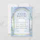 Amaze your guests with this lovely fairy tale theme wedding RSVP card featuring a beautiful castle and majestic arches with modern typography.