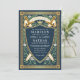 Blue Floral Fantasy Swords Shield Monogram Wedding Inbjudningar