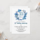 This Wedding Anniversary Invitation has an elegant script calligraphy completed by wonderful blue watercolor flowers and a gold frame around them. You can personalize this Invitation with your Wedding Anniversary details.