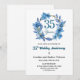 Blue Floral Gold Frame 35th Wedding Anniversary Inbjudningar
