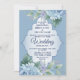 Blue Floral Green Leaves Frame Elegant Wedding Inbjudningar
