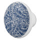 Intricate blue floral pattern with diverse leaves and blossoms on a beige background, conveying an elegant and natural aesthetic.