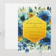 A vibrant watercolor design bursts with deep blues and sunny yellows. Lush floral blooms and leafy sprigs create a romantic, painterly backdrop. This artistic arrangement evokes a feeling of cheerful elegance.