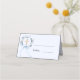 Guide guests to their seats with this elegant religious place card. The design features a delicate blue watercolor floral wreath surrounding a gold cross, accented by a graceful light blue ribbon. This card is a beautiful and functional addition to the reception table for a boy's baptism.