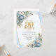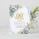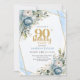 Blue Florals Gold Border 90th Birthday Invitation Inbjudningar