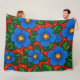 Blue Flowers and Green Leaves on a Red Background Fleecefilt