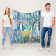 Njut av den här vita, naiva täckfilten av blåskog med foder med blåa blommor under högt träd, fjärilar som flyger runt några större löv som flyter i luft och en söt liten flicka med några nyckelpigor fullbordar denna konstnärliga miljö av en magisk skog. Det kommer att bli underbart att förbättra ditt lilla flickrum med magiska skogar. Underbar gåva till födelsedag eller annat tillfälle.