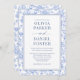 Blue French Floral Photo QR Code Toile Invitation Inbjudningar