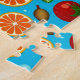Vackra fruktpussel med blå bakgrund, citron, Orange, jordgubbar och kiwi puzzle, färglösa citrusfrukter Mönster med blå bakgrund, citroner, Orangar, jordgubbar och kiwis puzzle.